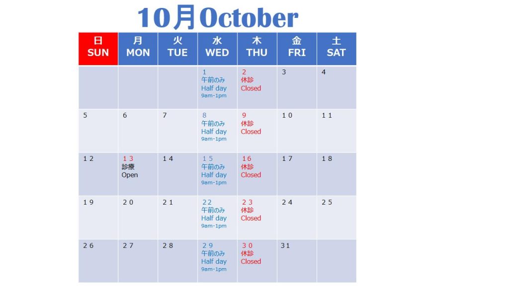 長い夏もやっと落ち着き、小さい秋がそこここで見つけられるようになってきました。暑く長い夏の疲れがどっと出てくる時期でもあります。季節の変わり目、体調を崩さないようにお気を付け下さいね。体調が優れない時はいつでもご連絡ください。